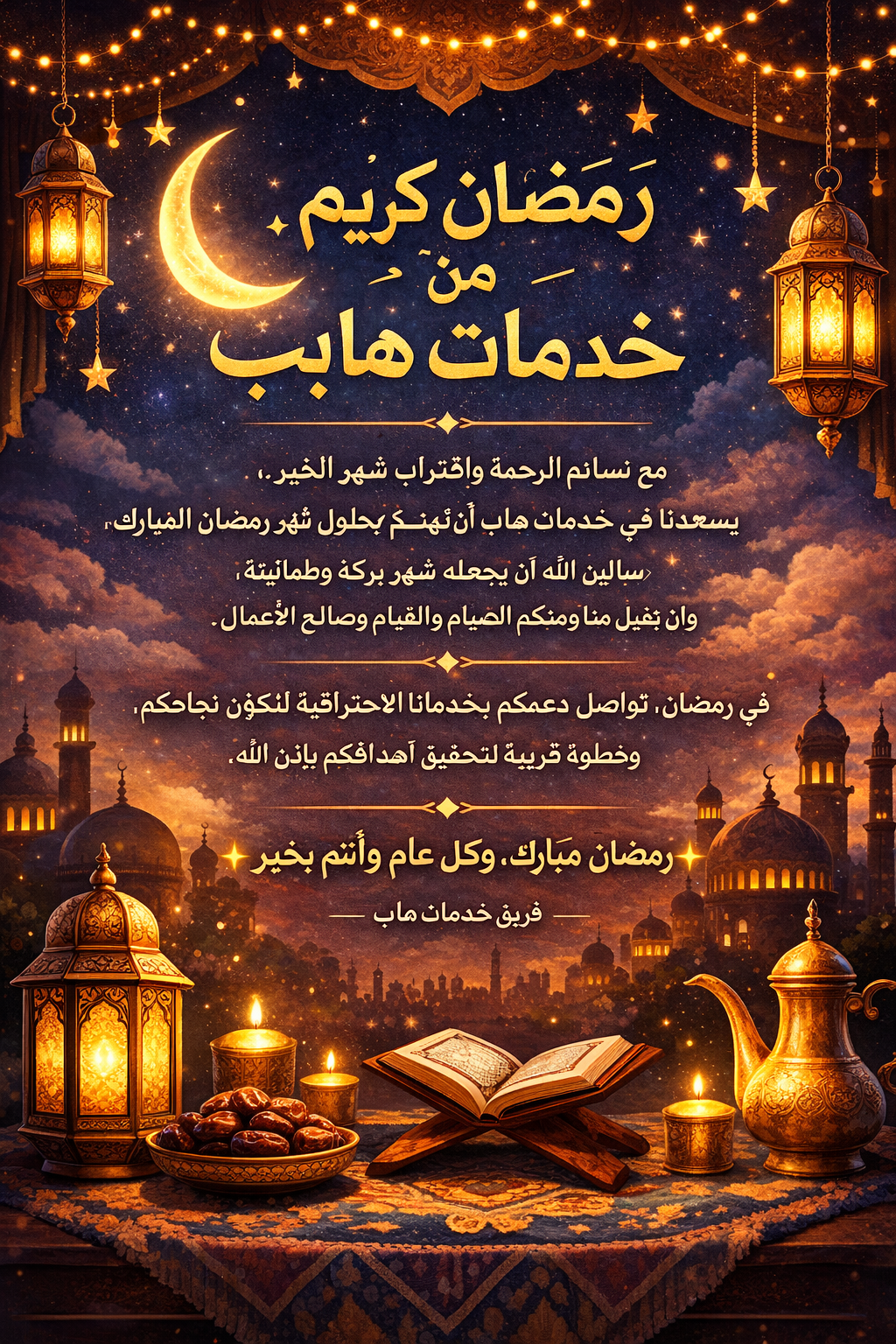 يسعدنا في خدمات هاب أن نهنئكم بحلول شهر رمضان المبارك،